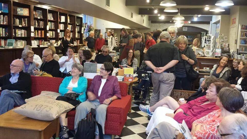 And I’m really glad I did. Below are two videos/vimeos from likely the largest gathering there ever will be of the contributors to the resultant book that Bruce edited, Curiosity’s Cats: Writers on Research. These were filmed from a stationary KODAK touchcam at St. Paul’s SubText Book Shop, which filled with sixty-plus people, a larger crowd than I have seen at many a book signing. Bruce was exactly right: people need a book that affirms the magic of research beyond The Google. Below are two videos shot by my wife, Tamara Gebhart Yates, who traveled the many miles to St. Paul with me.